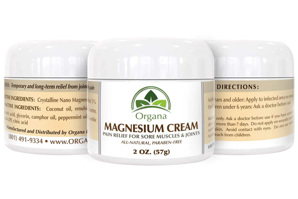 Using all natural ingredients, Organa Magnesium Cream is formulated to aid in the temporary and long term relief of sore muscles and joints.  Peppermint, Wintergreen, Camphor and Menthol essential oils help cool the skin and relieve aches.  Crystalline nano magnesium penetrates the skin to go deep in the muscles and joints.