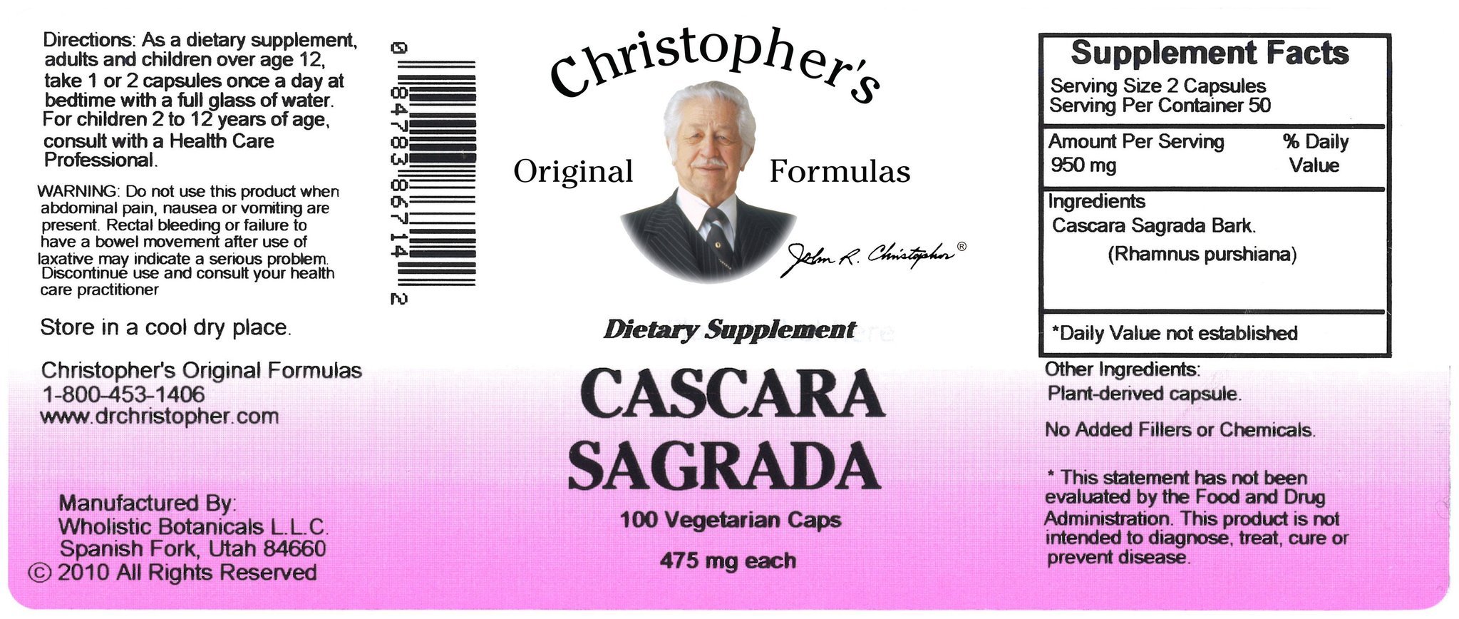 Christopher's Original Formulas Cascara Sagrada Bark Caps 100 ct.