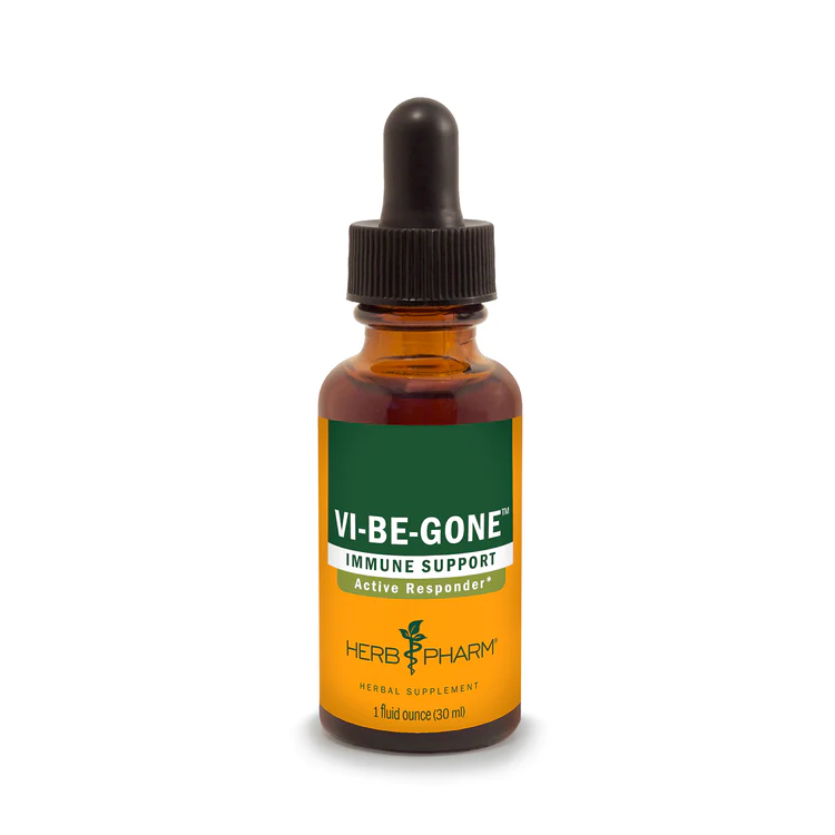 Our Vi-Be-Gone compound features Lomatium extract prepared from the fresh root of Lomatium dissectum plants, responsibly wildcrafted for us in their rocky, Oregon habitat. It also features St. John's Wort responsibly wildcrafted in Oregon's Siskiyou and Cascade mountains and extracted fresh each summer near the solstice.
