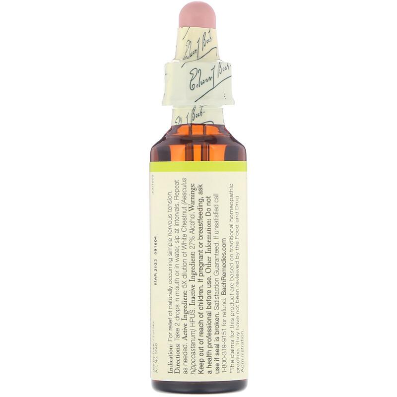 Calm The Mind. The BACH®* remedy White Chestnut encourages the positive potential to find tranquility and peace of mind. Don't let those repetitive thoughts cloud your mind and get in the way of your focus. Reclaim your day and cope with the hectic world around you.