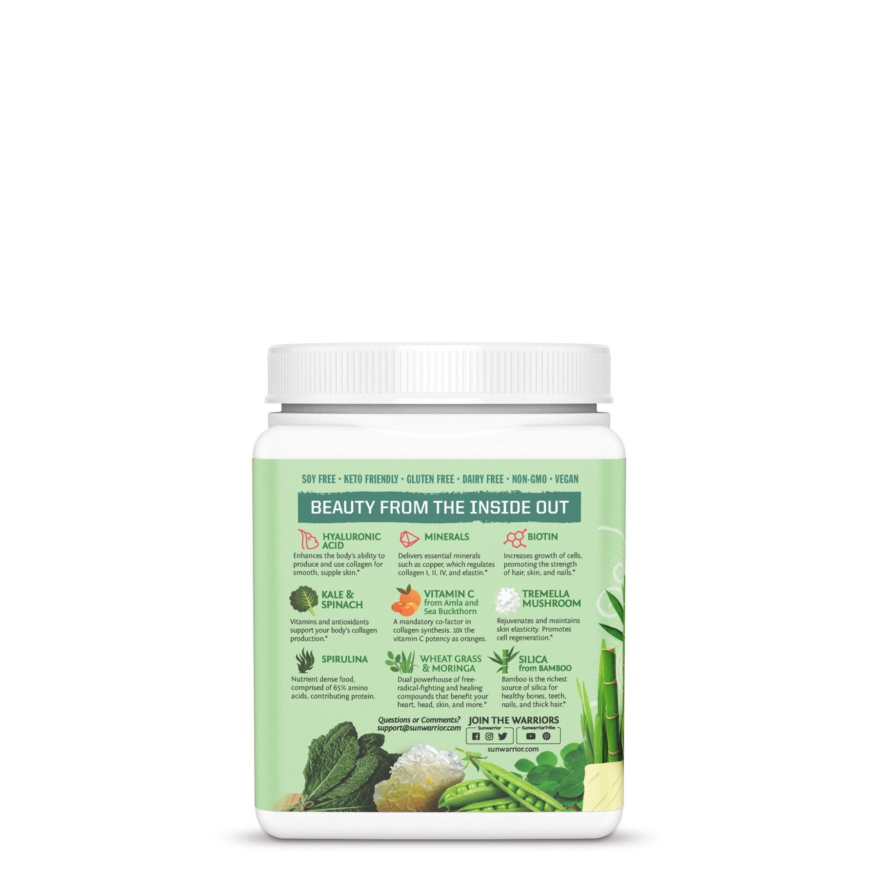 They say beauty is only skin deep, but Sunwarrior has taken beauty deeper, to every cell. Free radicals damage cells and trigger aging, but Sunwarrior's Beauty Greens Collagen Booster provides supple skin, healthy hair, strong nails, and cellular longevity.