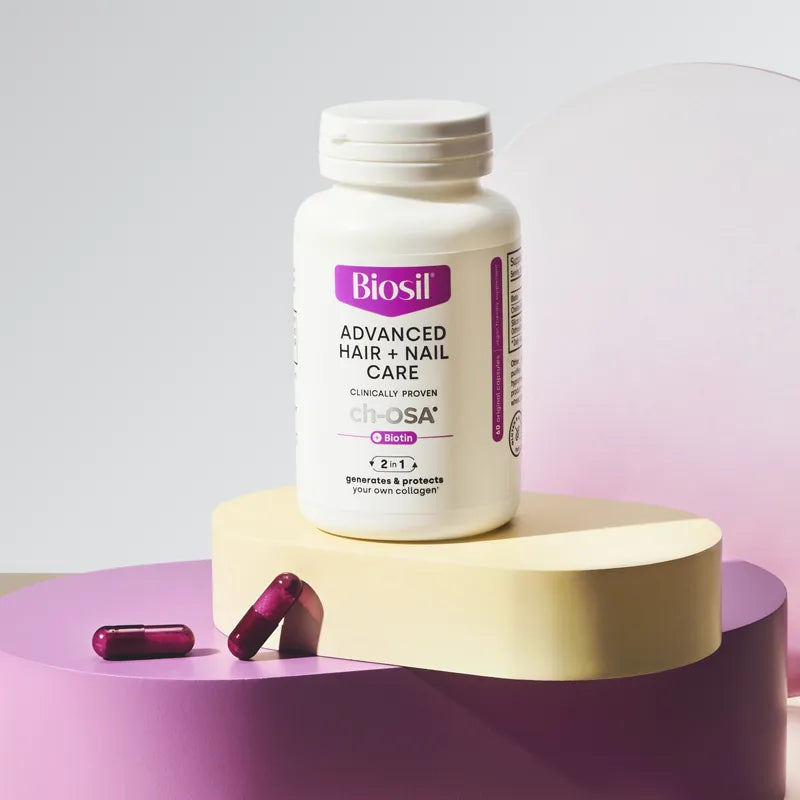 ch-OSA®, our patented and uniquely effective complex, and Biotin are the two active ingredients in Biosil Advanced Hair + Nail Care. The other ingredients are microcrystalline cellulose, purified water. Capsule shell consists of hypromellose and red carrot extract.