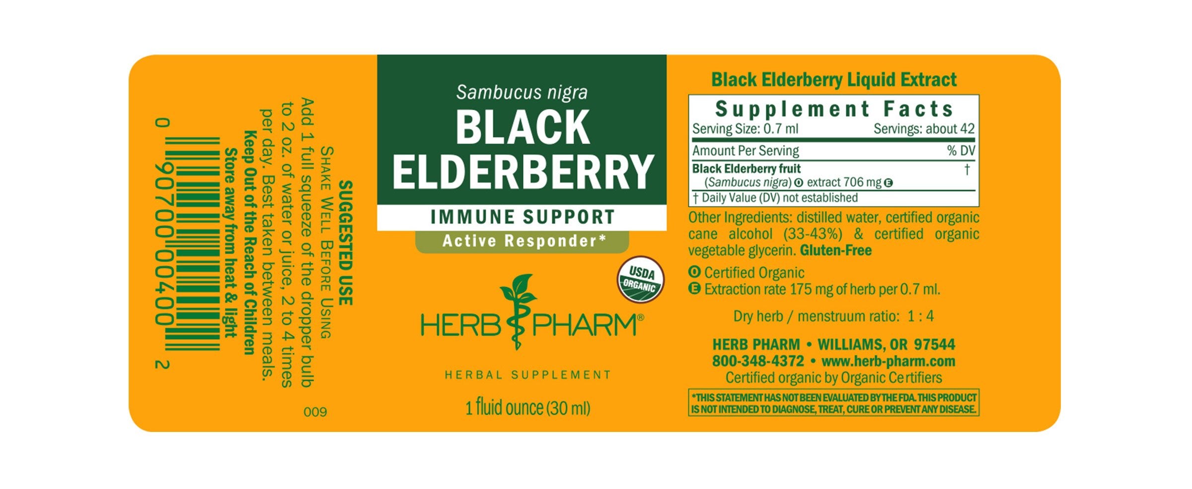 We prepare Black Elderberry extract from the fully ripened berries of Certified Organic Sambucus nigra trees. To assure optimal extraction of the herb’s bioactive compounds, the berries are hand-harvested only when ripe. The herb is extracted in small batches with Certified Organic cane alcohol for potency and to maintain the balance of phytochemicals as they exist in the plant. We assure herb identity via macroscopic and organoleptic analysis, then confirm it through methods such as HPTLC fingerprinting specific to each herb. The formula is easily dispensed, taken in liquid form and added to water or other liquid.