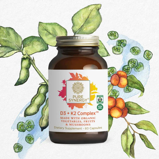 D3+ K2 Complex™ features algae-derived vitamin D3 with plant-based K2 and fermented K1 combined with organic whole foods like immune-supporting shiitake mushrooms, vitamin C-rich camu camu berry, and nourishing green vegetables and sprouts.