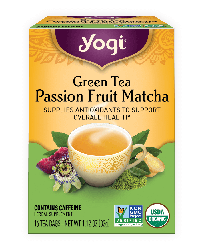 Yogi Green Tea Passion Fruit Matcha tea is a deliciously purposeful blend that combines Green Tea and Matcha Green Tea to supply antioxidants to support your overall health. Plum and Passion Fruit flavors add light, fruity notes to this Matcha Green tea blend, while refreshing Lemongrass and Ginger impart invigorating flavor. Enjoy a deliciously intriguing cup of Yogi Green Tea Passion Fruit Matcha tea any time of day to feel a sense of renewal and support your overall health and wellness.*