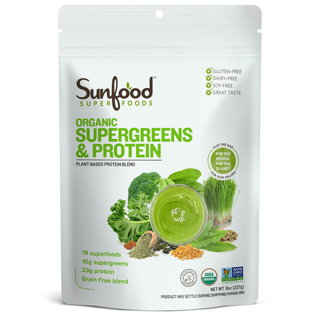 Get your daily Supergreens & Protein in one delicious blend. The new protein blend formula delivers a smooth texture, great taste, and is powered by 19 green superfoods. Supergreens & Protein also contains probiotics and enzymes to help your inner ecosystem thrive. Feel energized and alkalized with Supergreens & Protein.