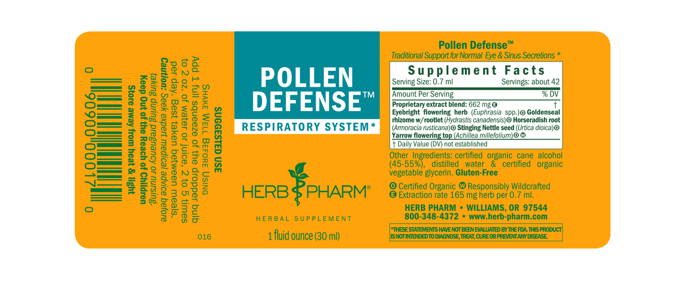 Pollen Defense features Eyebright extract prepared from the flowering herb of Certified Organic Euphrasia spp. plants. It also features Stinging Nettle extract prepared from the seed of Certified Organic Urtica dioica plants.